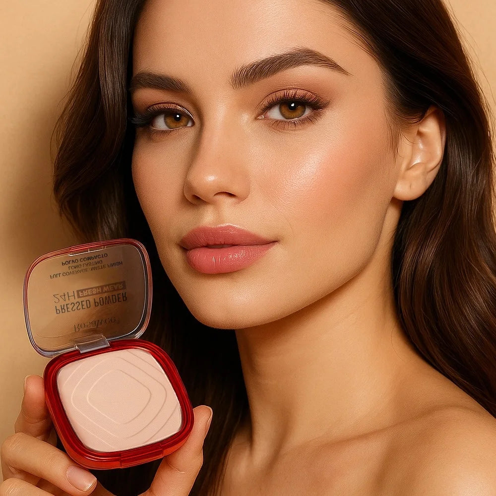 Matte Set Powder Full Coverage Pressed Powder Foundation With Puff Applicator 24H Fresh Wear Weightless Finishing Powder Makeup